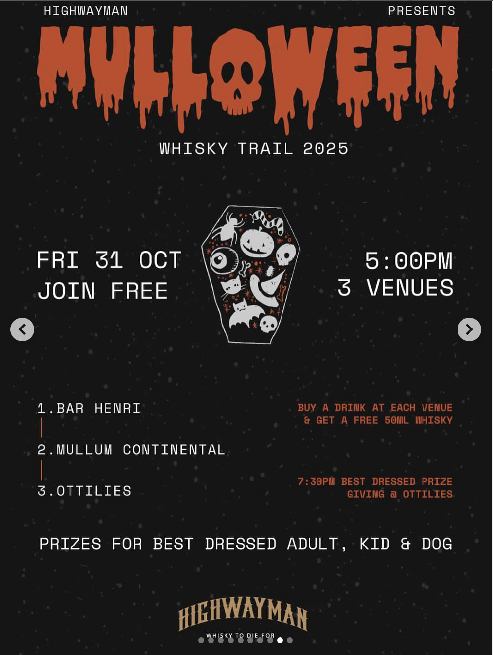 9. Mullumbimby is going to be the place to be this Halloween on Friday 31st October with ‘Mulloween’ a @highwaymanwhisky bar crawl with costumes, prizes & giveaways! 👻🥃