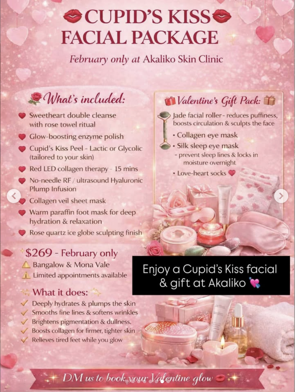 6. Bangalow skin clinic @akalikoskinclinic has put together an incredible Cupid’s Kiss facial package available throughout February, designed to deeply hydrate & plump the skin, boost collagen, brighten & smooth skin💘✨ You will also receive a Valentine’s gift pack including a Jade facial roller 💕💕