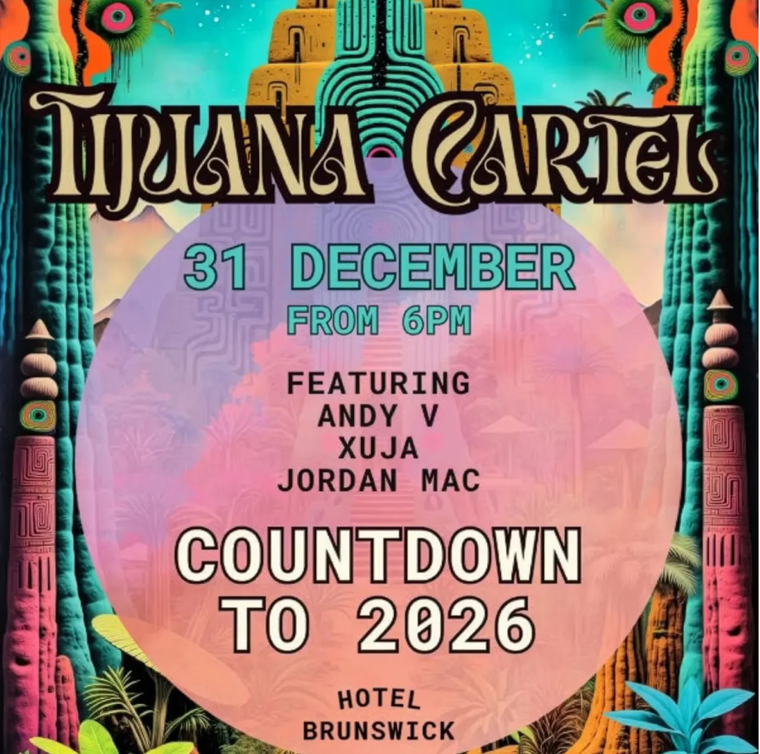 Not to be missed this NYE ft Tijuana Cartel, Andy V, Xuja and Jordan Mac are bringing you into 2026 in style. Limited early bird and first release ticketed available until December 1st, so don’t mind out!