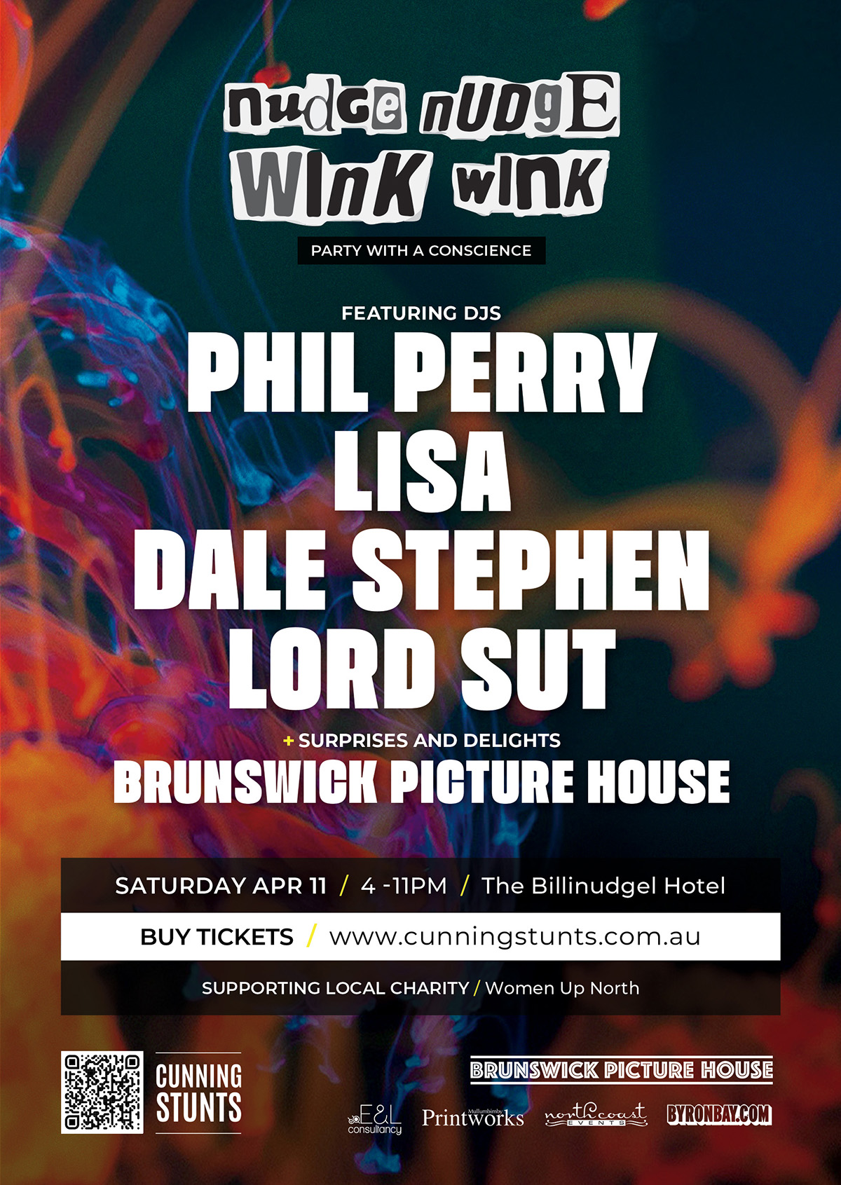 Nudge Nudge Wink Wink hits the Shed at the Billinudgel Hotel on Saturday 11 April, bringing together quality dance music, a full dancefloor and a community that knows how to show up and make a night of it.